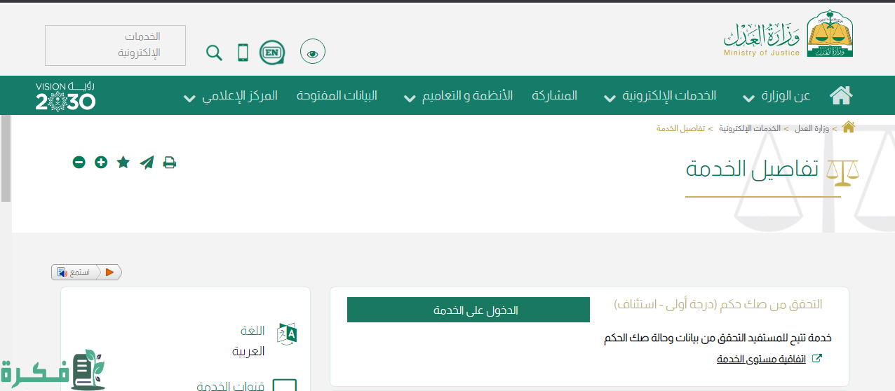 - اذهب إلى موقع الخدمة من بوابة وزارة العدل من هنــــــــــا.