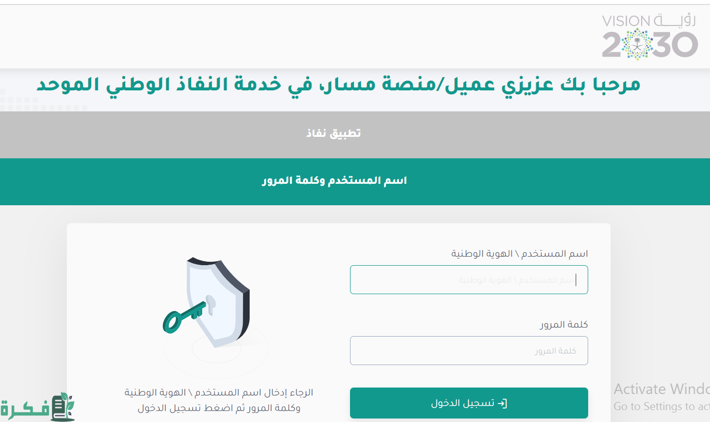 • اضغط على “تسجيل الدخول عبر النفاذ الوطني الموحد” من أعلى الصفحة الرئيسية لمنصة مسار.