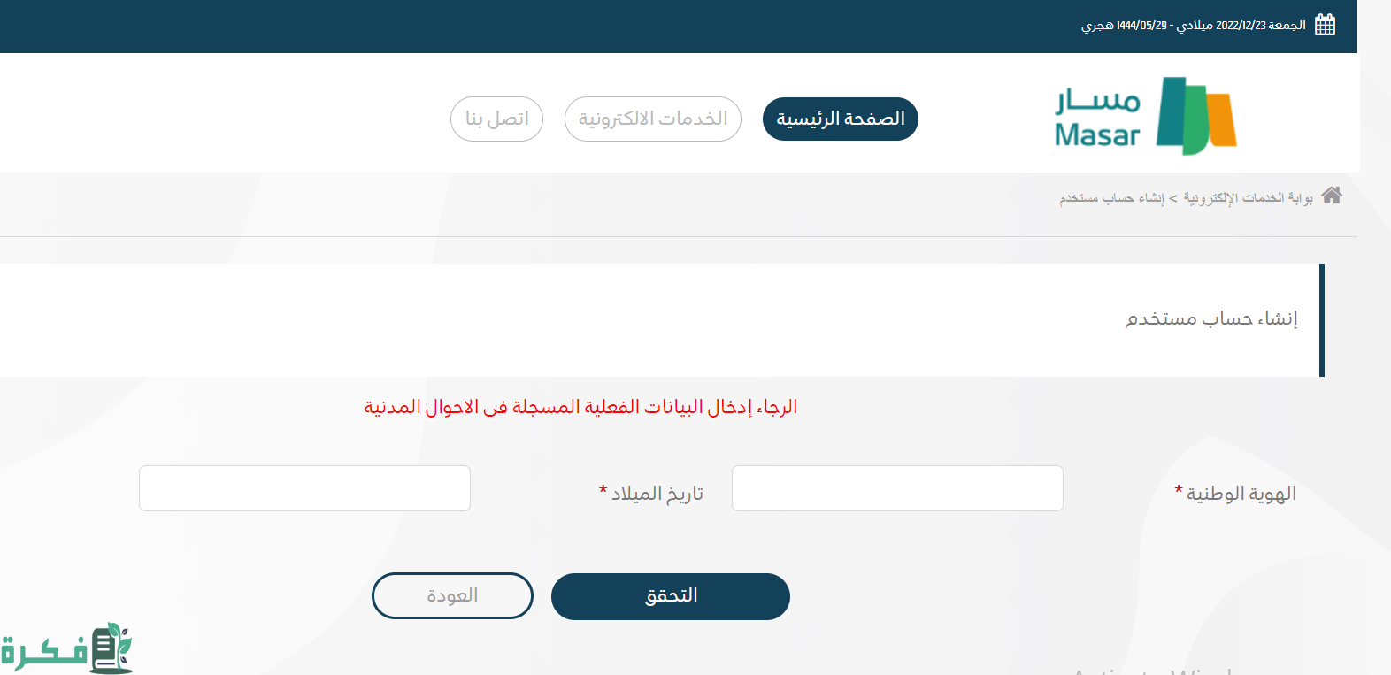 • سيكون على المستخدم إدخال رقم الهوية الوطنية وتاريخ الميلاد بشكل دقيق وصحيح.