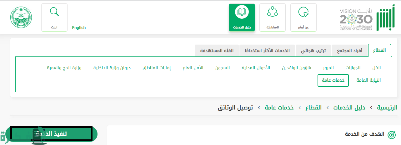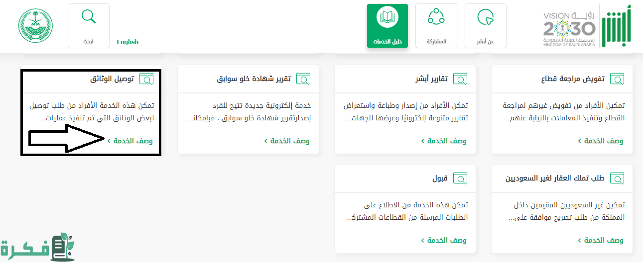 7. من خانة توصيل الوثائق، يتم النقر على “وصف الخدمة”.