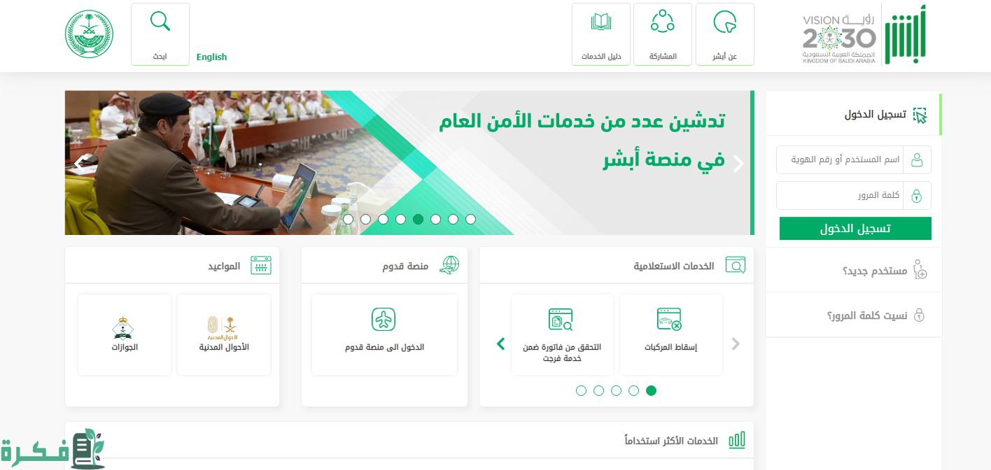 - الدخول إلى منصة أبشر من هنا.