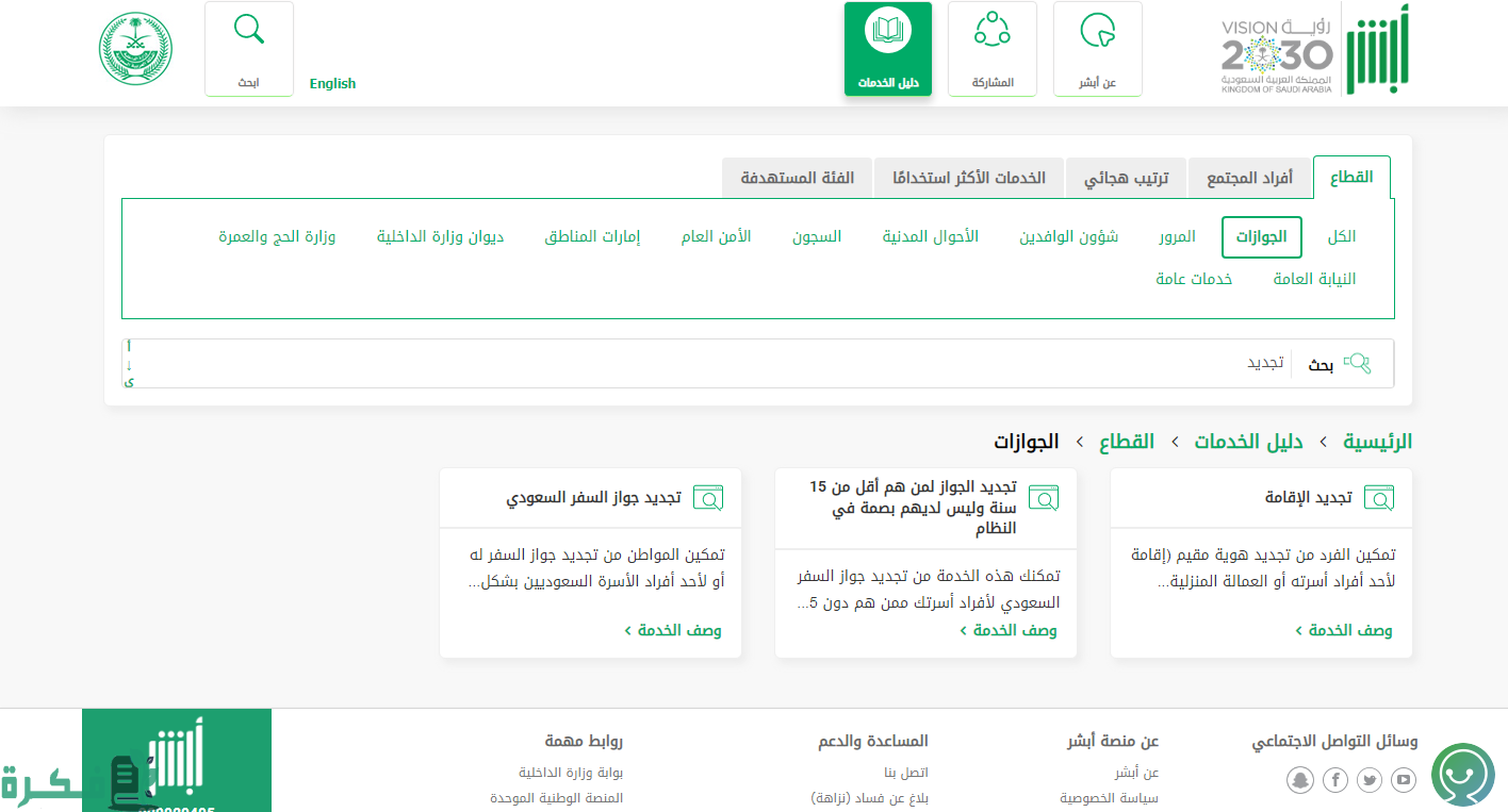 - النقر على دليل الخدمات وخانة الجوازات.