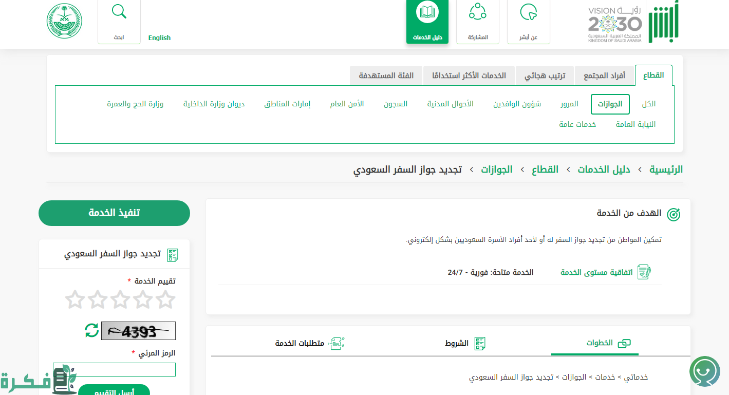 - اختيار خدمة تجديد جواز السفر السعودي.