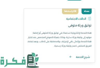 - اختر نوع الخدمة ” توثيق ورثة متوفى – إضافة مولود “.