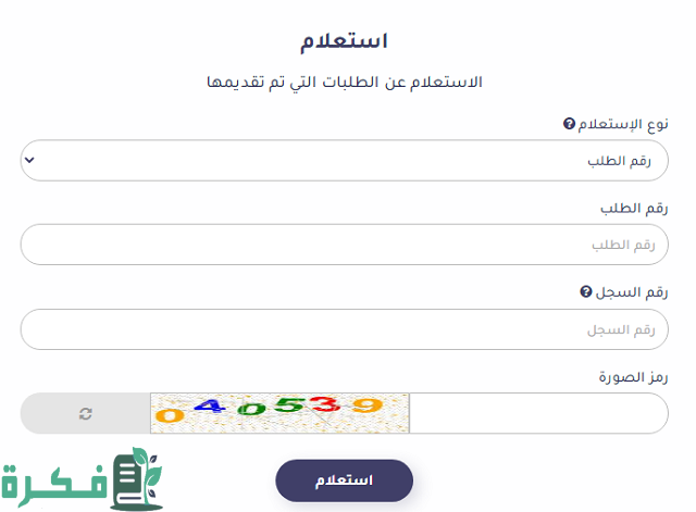 - من الصفحة الرئيسية ستجد مربع خاص بالاستعلامات عن الطلبات المُقدمة.
