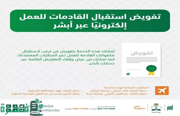 تفويض استقبال القادمات للعمل عن طريق أبشر