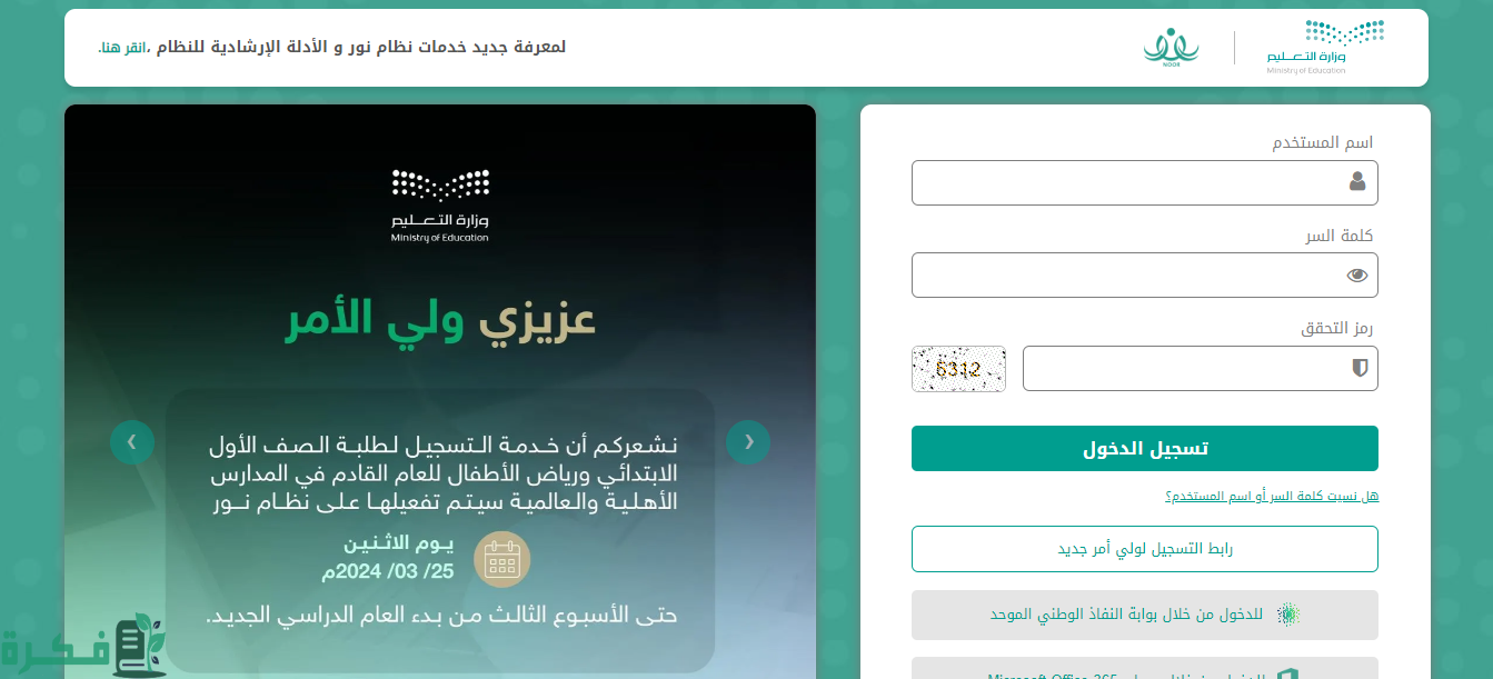 موعد لتسجيل الصف الاول الابتدائي 1446 نور noor