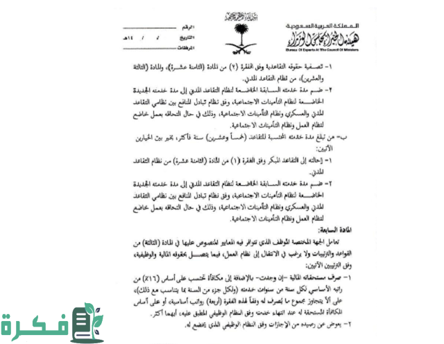 - من تتخطى خدمته 25 سنة يتم تخييره بين الإحالة للتقاعد وصرف ربع الراتب كمكافأة نهاية الخدمة على أن يتم صرف الراتب التقاعدي وتوفير عقد عمل جديد أو يتم ضم تأميناته الاجتماعية وفي تلك الحالة يأخذ مكافأة نهاية الخدمة أربعة رواتب من الراتب الأساسي المستحق.