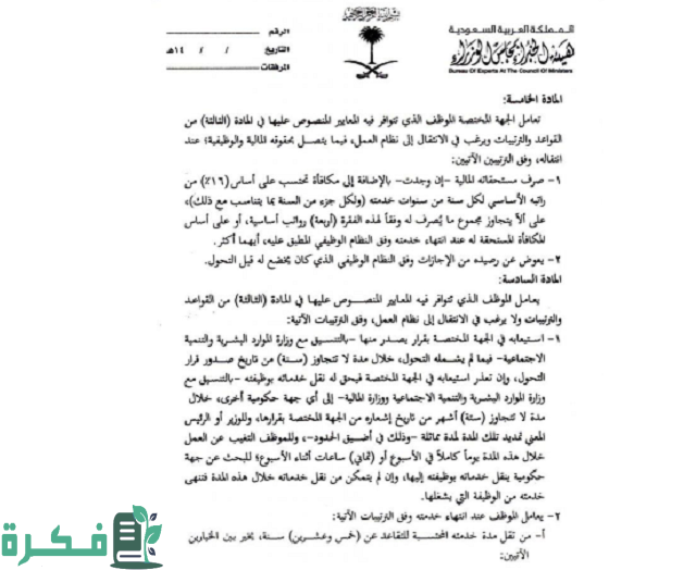 - التحول: يراد به تحول الموظفين في الجهات الحكومية من نظام الخدمة لمدنية إلى واحدة من النظم الوظيفية الأخرى.