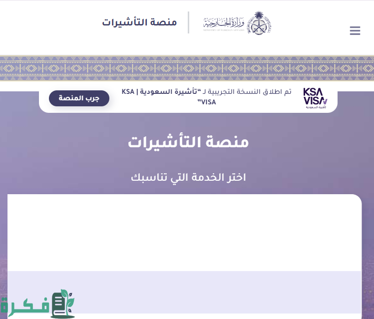 - تسجيل الدخول لمنصة خدمة التأشيرات الإلكترونية “من هنا“.