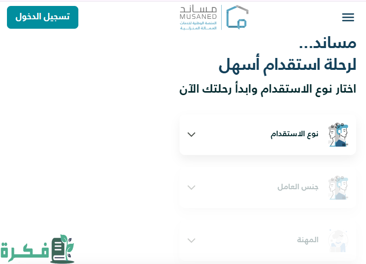 - الذهاب إلى منصة مساند الوطنية لخدمات العمالة المنزلية “من هنا“.