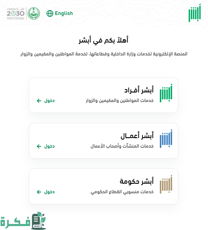 - الانتقال إلى منصة أبشر الإلكترونية “من هنا“.