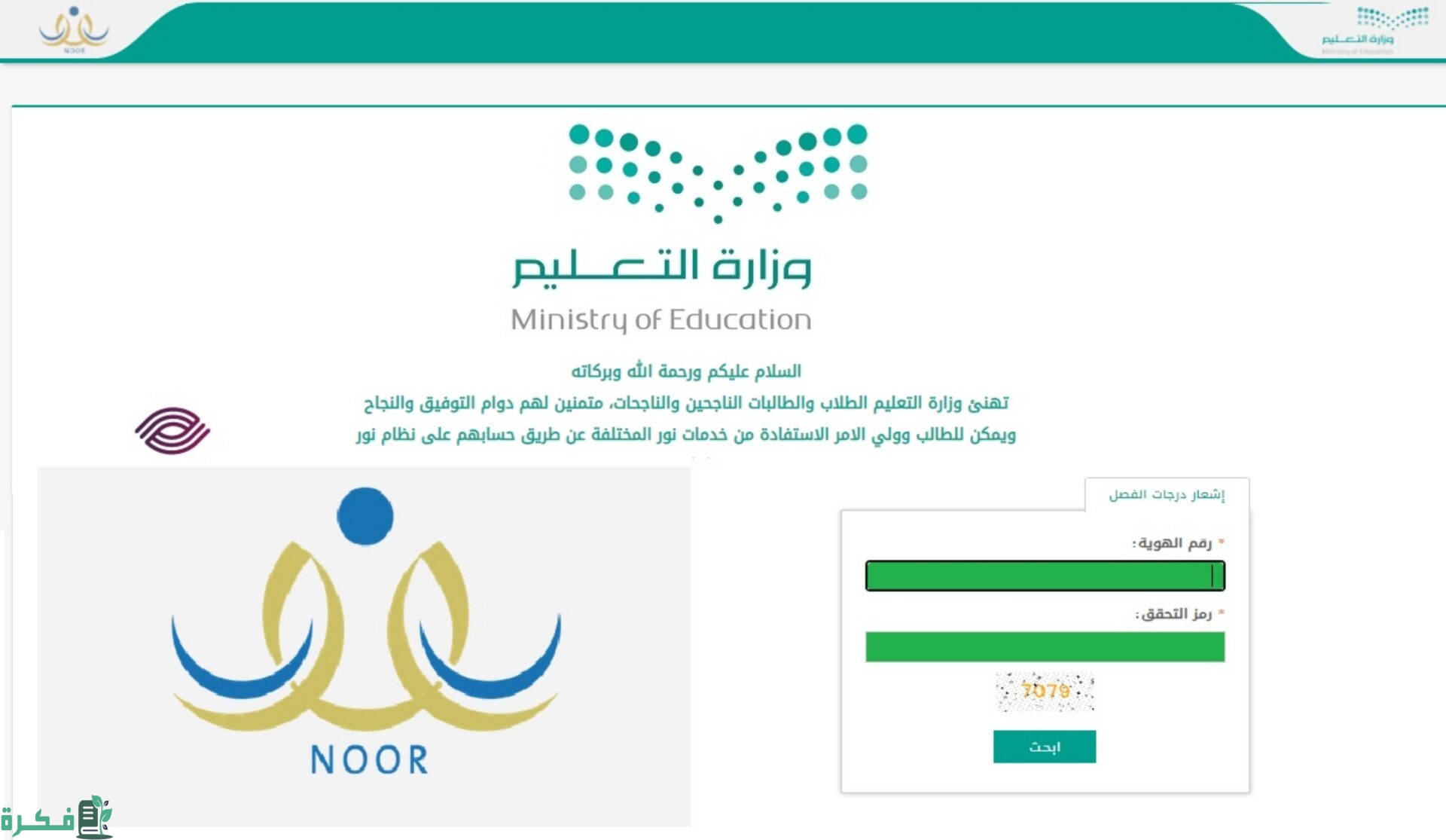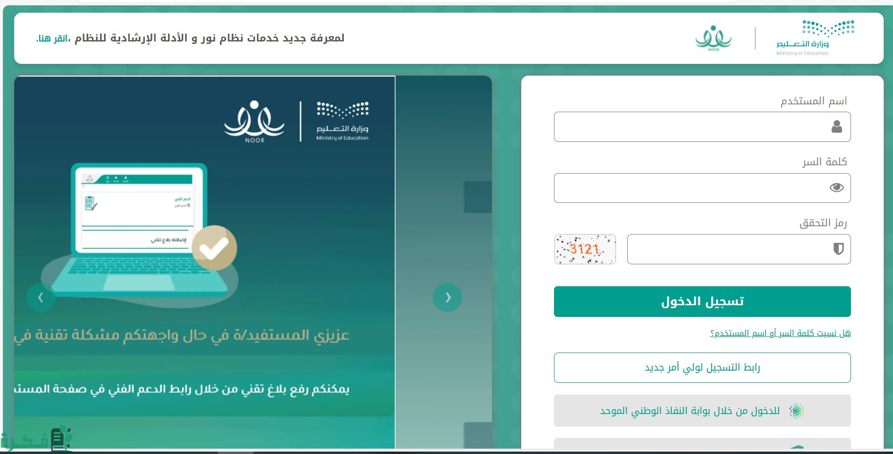 - في البداية عليك التوجه إلى الموقع الإلكتروني الرسمي الخاص بنظام نور من هنا.