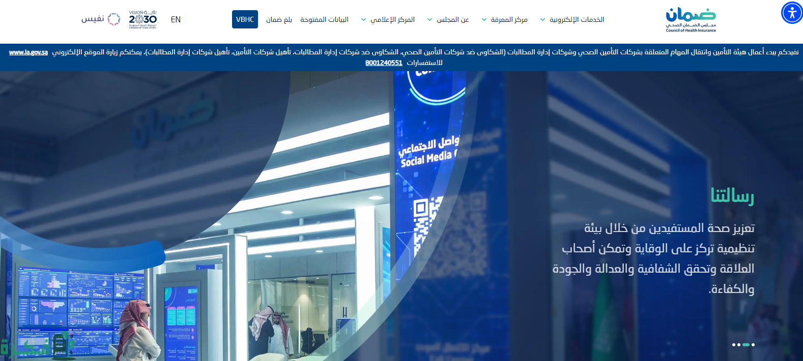 - يجب أن يتم فتح الموقع الرسمي لمجلس الضمان الصحي من خلال هذا الرابط.