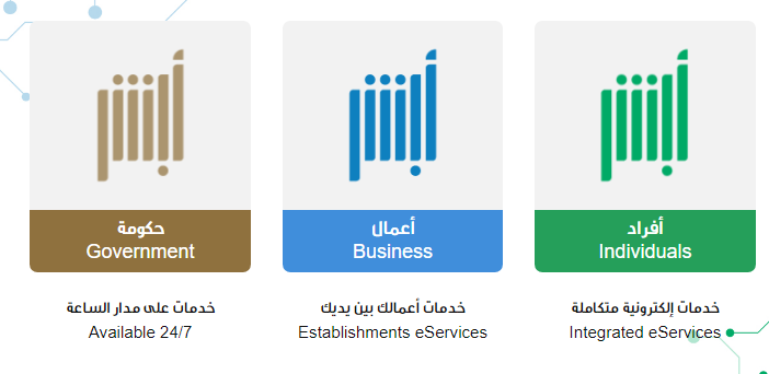 - في البداية عليك الذهاب إلى الموقع الإلكتروني الرسمي الخاص بمنصة أبشر من هنا.