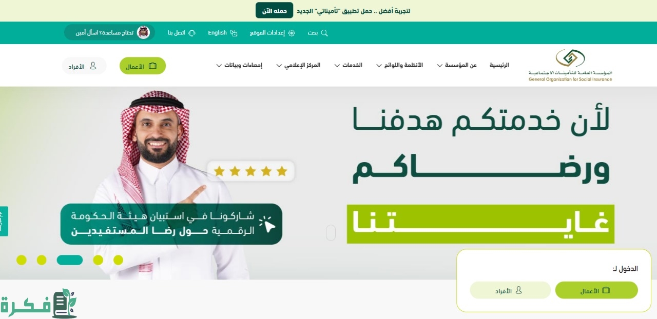 - ادخل إلى الموقع الإلكتروني الرسمي التابع لهيئة التأمينات الاجتماعية من خلال الضغط على هذا الرابط.