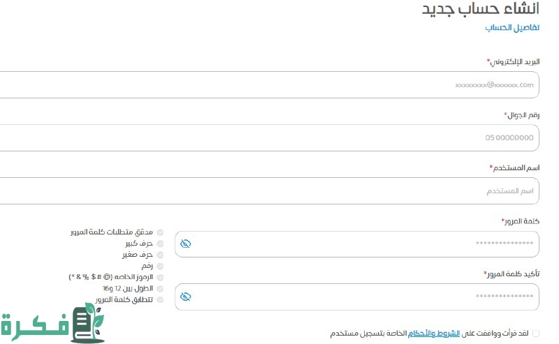 - ادخل كافة البيانات اللازمة للتسجيل من خلال كتابة البريد الإلكتروني، رقم الهاتف الجوال، اسم المُستخدم، كلمة المرور.