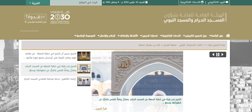 - الانتقال إلى الصفحة الرئيسية لموقع هيئة شؤون الحرمين الشريفين.
