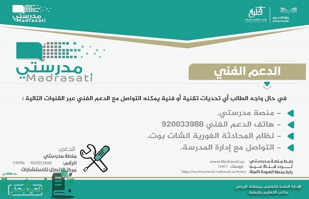كيفية التواصل مع الدعم الفني لمنصة مدرستي