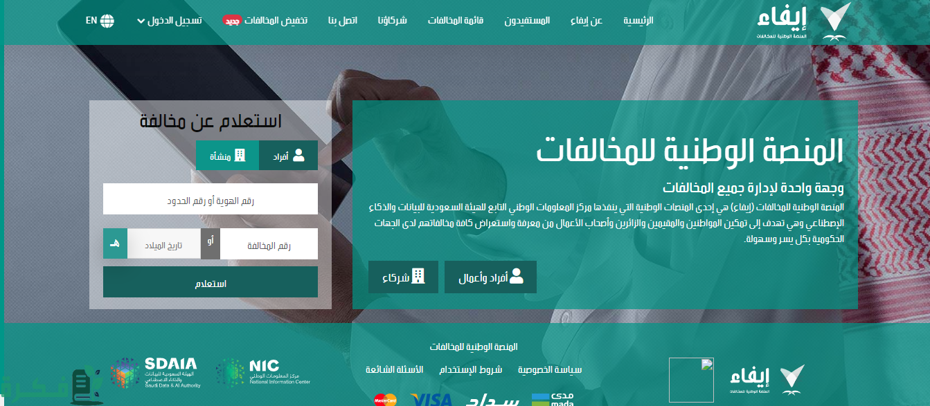 منصة إيفاء تُعتبر منصة وطنية قامت السلطات في المملكة العربية السعودية بإطلاقها لاستقبال طلبات المواطنين الذين يبحثون عن قيمة المخالفات المرورية وكيفية سدادها للأشخاص المُقيمين في المملكة ويتم التسجيل فيها بواسطة مجموعة من الخطوات الموضحة من قبل السلطات.