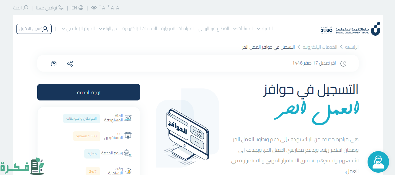 خطوات التسجيل في حوافز العمل الحر على منصة بنك التنمية الاجتماعية 1447