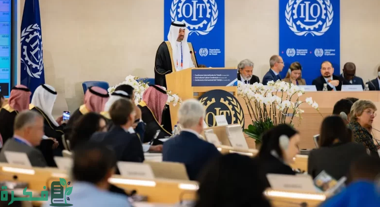 أعلن أيضًا أهم مبادرات المملكة للتصدي لمخاطر التغير المناخي التي تواجه عالم العمل اليوم، وللحدّ من آثارها في العقد الجديد وجهود المملكة في تسخير التكنولوجيا لمواكبة التحولات الناتجة عن التقدم التكنولوجي وأهميته في تجديد العقد الاجتماعي ومبادرات المملكة لتنشيط الهيكل الثلاثي إلى جانب معايير العمل الأساسية والحوار الاجتماعي لضمان العقد الاجتماعي.