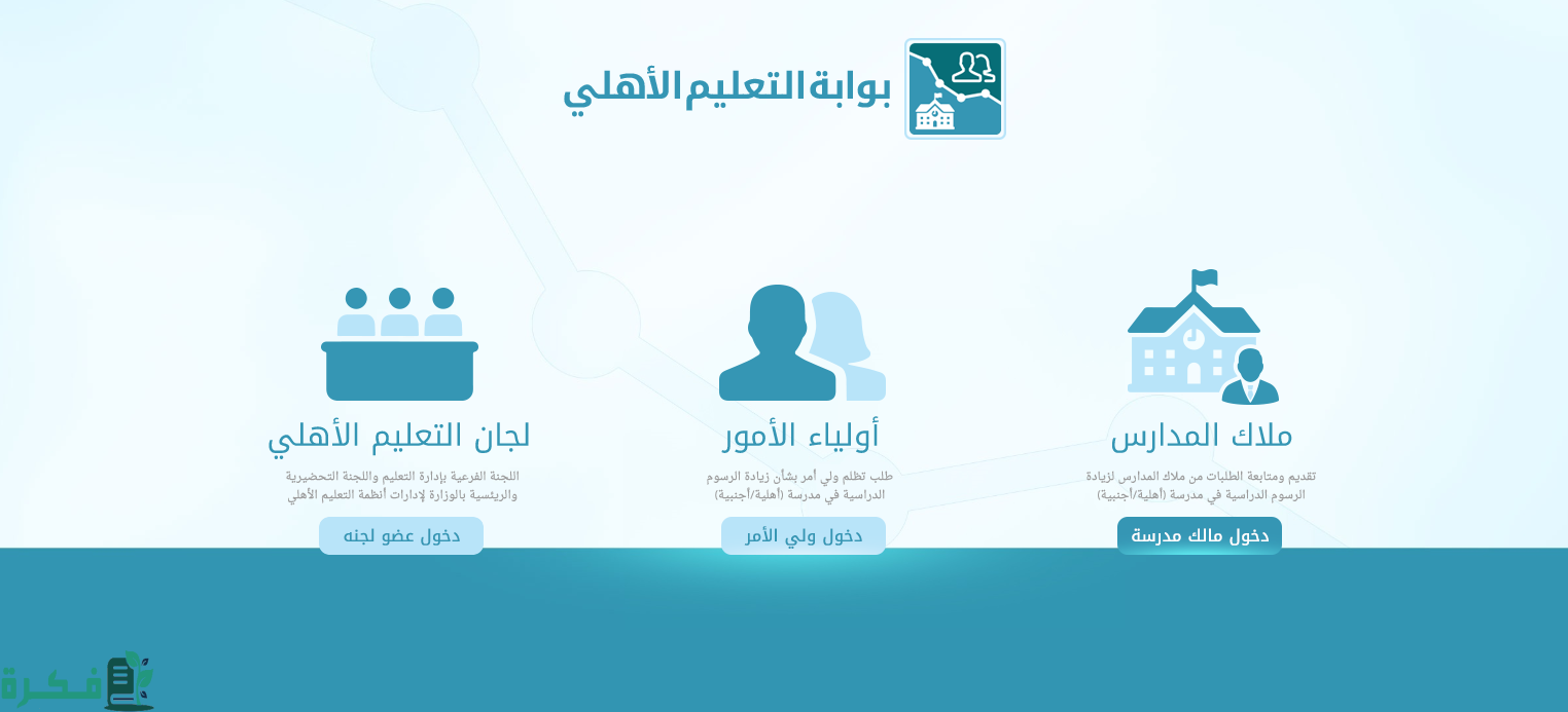 - الدخول عبر بوابة التعليم الأهلي من هنا.