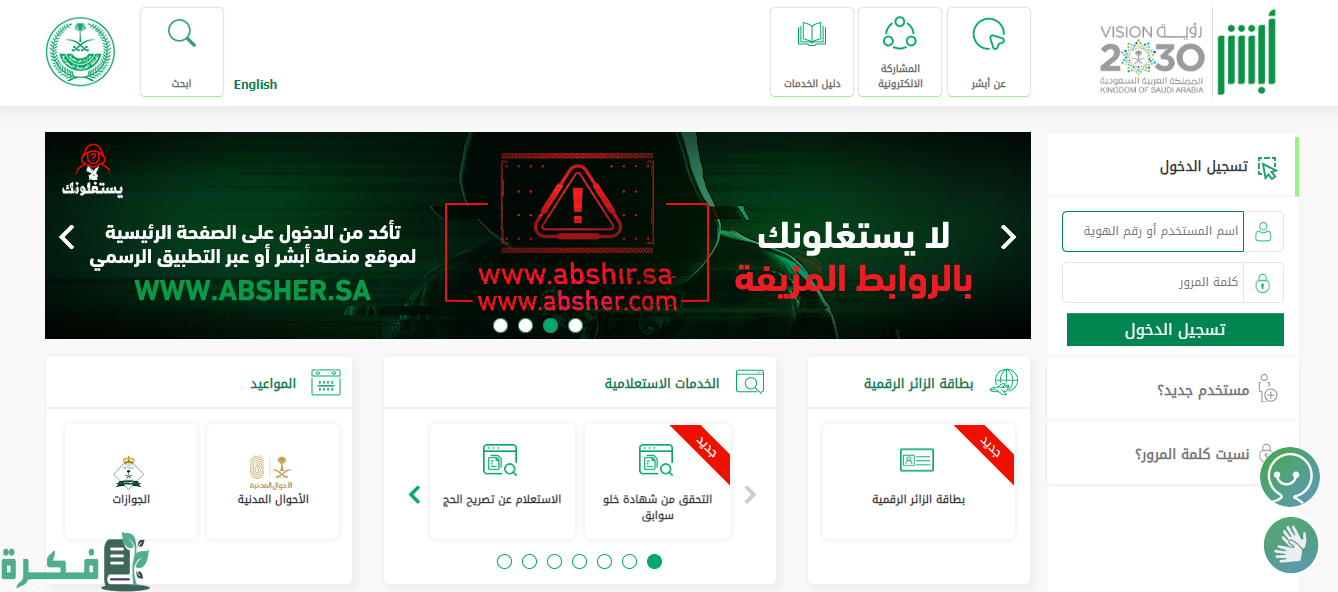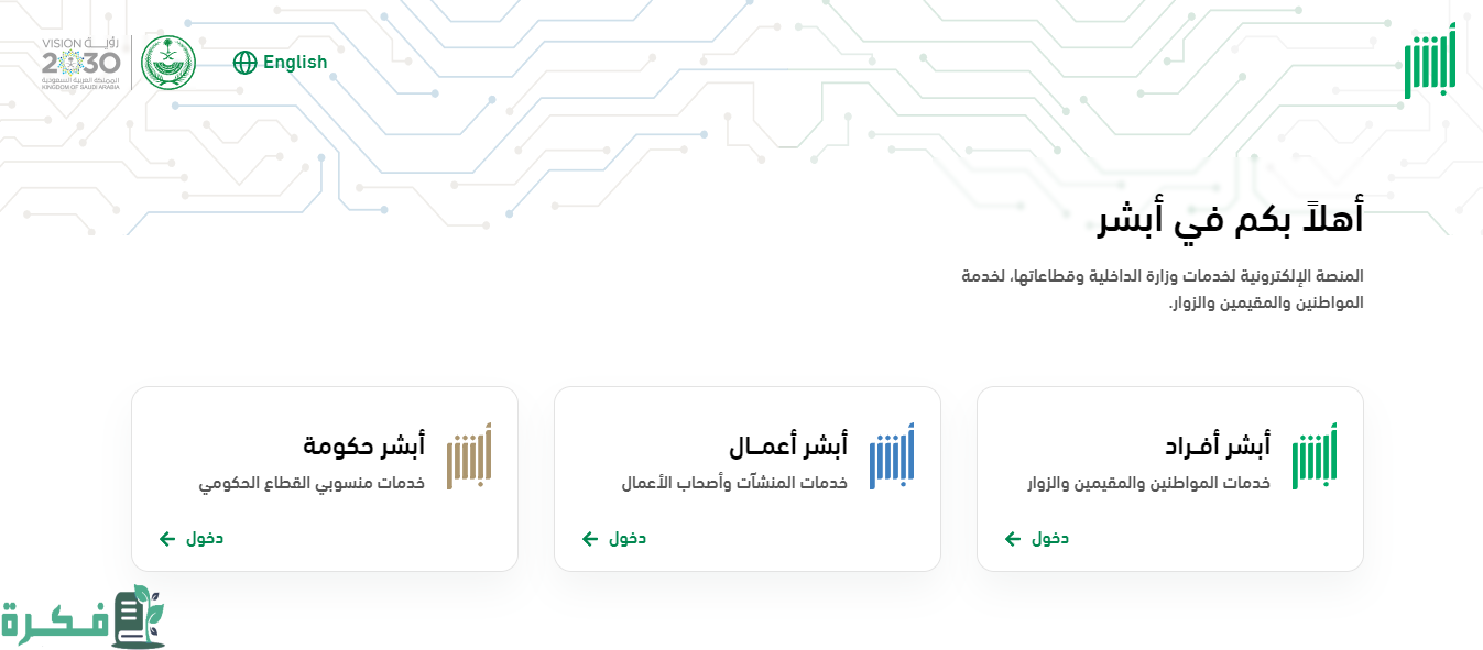 • الدخول إلى منصة أبشر الإلكترونية عبر الرابط من هنا.