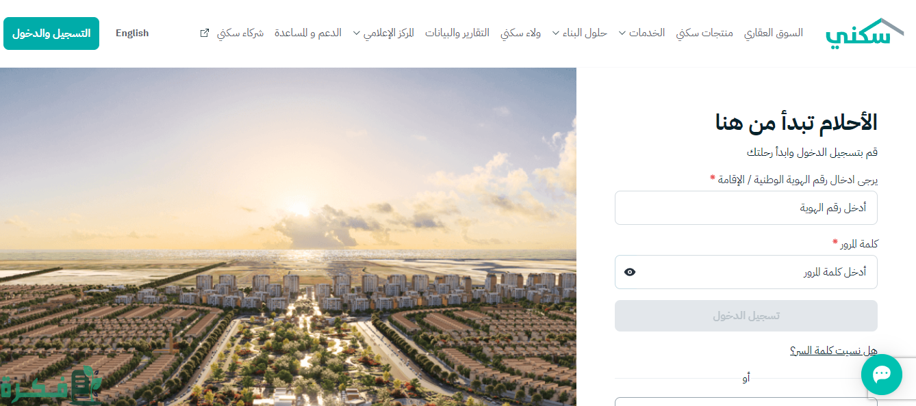 - التوجه إلى خدمة سكني من الصفحة الرئيسية.