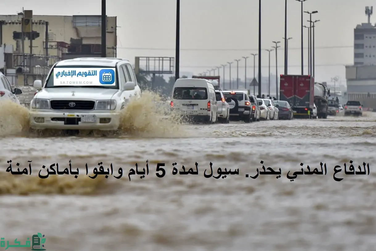 “الدفاع المدني السعودي” يحذر من تقلبات جوية حادة وسيول لمدة 5 أيام حتى الثلاثاء
