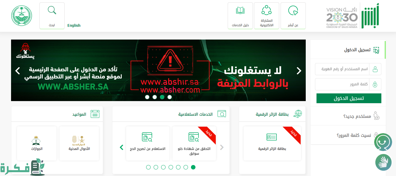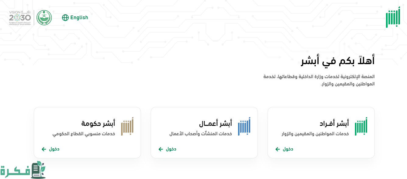 - الدخول إلى منصة أبشر الإلكترونية عبر الرابط من هنا.