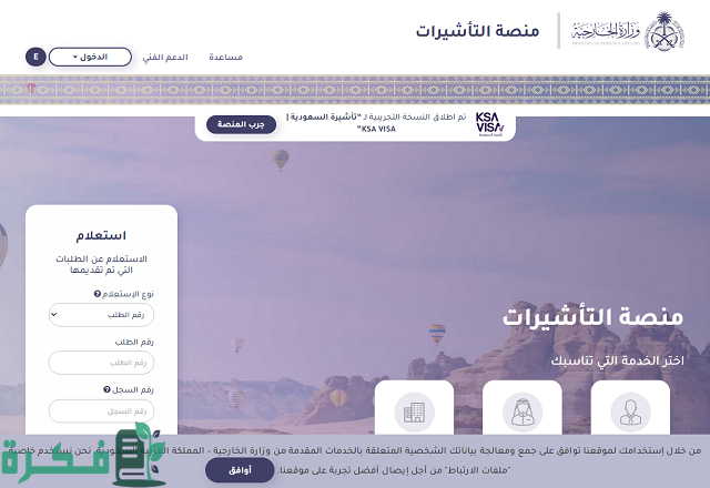 1. الدخول على منصة التأشيرات الخاصة بالسعودية” من هنا“.