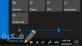 يمكننا تغيير وضبط سطوع الشاشة في أجهزة ويندوز 10 حيث اننا نقوم بتحديد الشبكة من الجانب الأيسر من شريط المهام ثم نقوم بتحريك شريط التمرير لضبط السطوع كما يمكن السماح لأجهزة ويندوز القيام بتغيير السطوع تلقائي على حسب الاضاءة المتوفرة حولك ويمكنك معرفة ما اذا كان جهازك يدعم هذه الخاصية أم لا نتبع عدة خطوات: