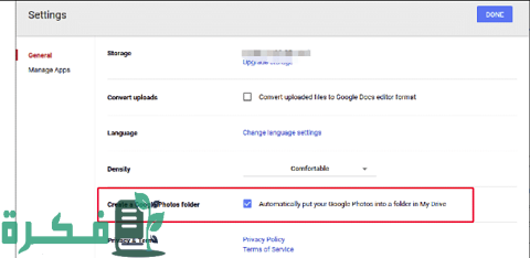 4. القيام بتفعيل خيار وضع الصور في مجلدات درايف أوتوماتيك.
