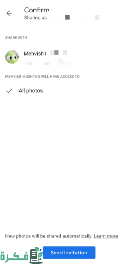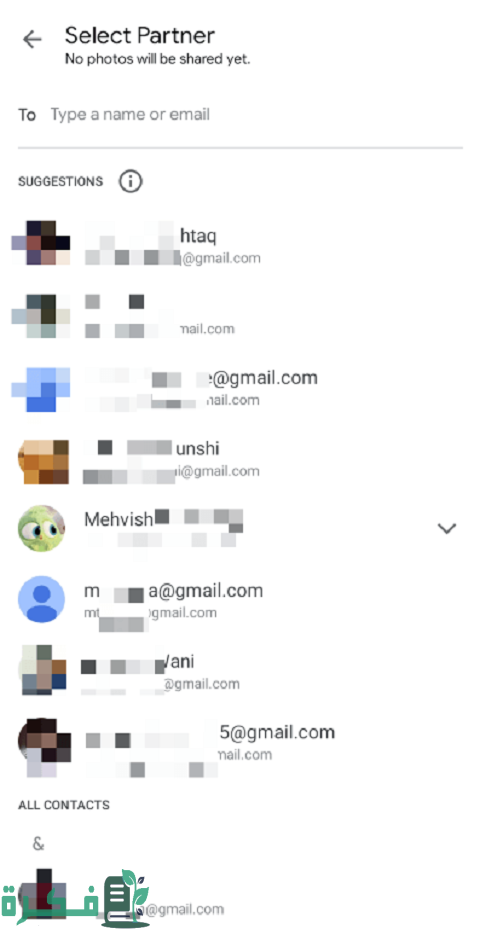 7. إدخال اسم أو عنوان البريد الإلكتروني للحساب الثاني المراد نقل الصور إليه.