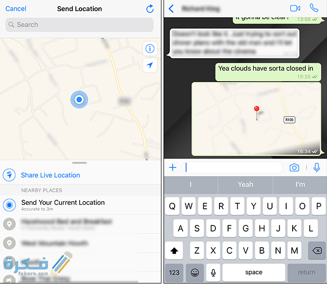 - ولكي تبدأ بمشاركه موقعك عليك القيام بفتح المحادثه التي تبدأ بمشاركه موقعك بها.