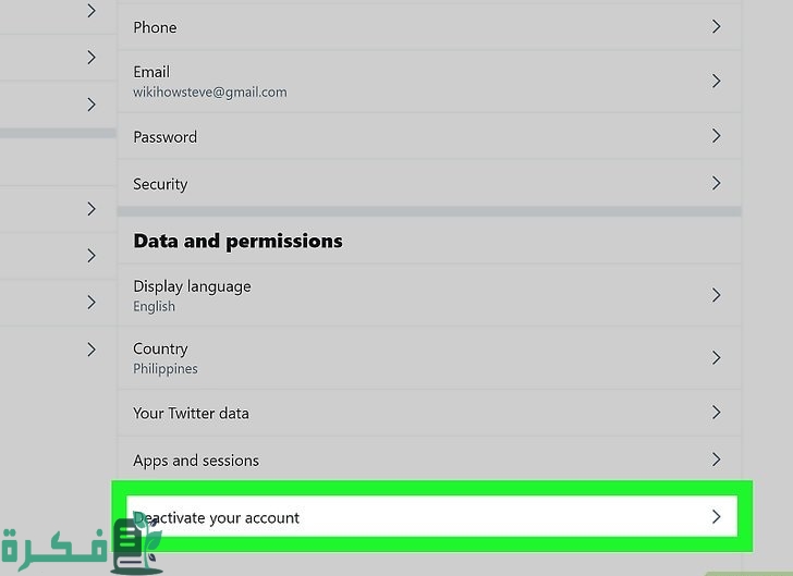 - اختيار خيار “إلغاء تفعيل الحساب Deactivate your Account”.