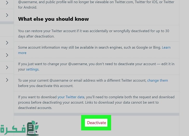 تويتر يُقدم للمستخدمين إمكانية حذف الحساب بشكلٍ دائم خلال 30 يومًا عند القيام ببعض الخطوات، وهي كالآتي:
