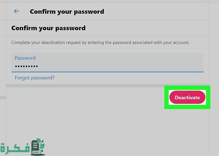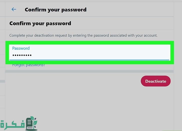 - إدخال كلمة المرور ثم الضغط على إلغاء تفعيل الحساب.