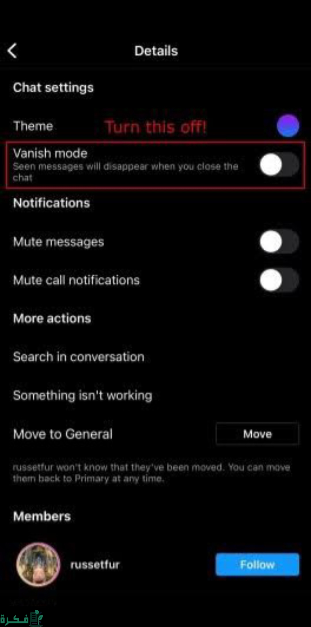 - اولا توجه الى صندوق الدردشة التي قمت بتفعيل وضع الاختفاء فيها.