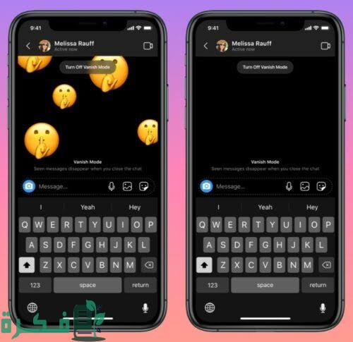 - أن خاصية Vanish Mode وهو وضع الأختفاء وهي عبارة عن خاصية يتم استخدامها في أثناء استخدام الدردشة والمحادثات وذلك للحفاظ على الخصوصية بعد انتهاء واكتمال الدردشة.