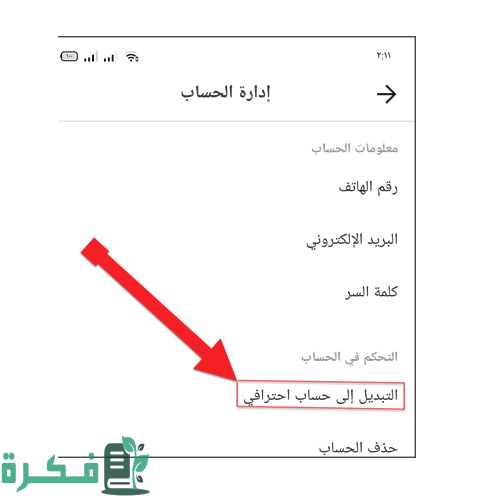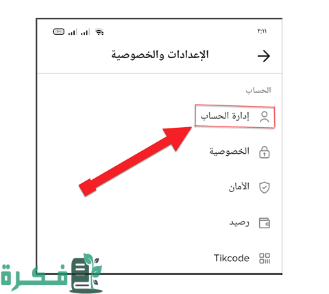 - يتم الدخول إلى إدارة الحساب التي توجد في صفحة الإعدادات والخصوصية.