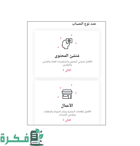 - يتم العمل على اختيار نوع الحساب المراد توثيقه ويكون ذلك من خلال اختيار (منشئ محتوى).