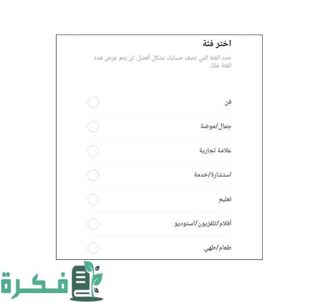 - يتم اختيار مجال العمل الذي يعمل به منشئ المحتوى وذلك من خلال عدة اختيارات تكون متاحة حتى يستطيع التوثيق عليه.
