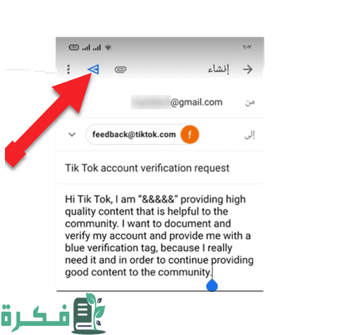 - ثم بعد ذلك يتم إرسال طلب توثيق حساب تيك توك على الإيميل الخاص بالتيك توك وهو من هنــــــــا.