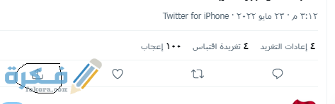 - ثم تقوم بالضغط على أيقونة أسفل التغريدة ما بين أيقونة الإعجاب وأيقونة الاقتباس وأيقونة التعليق هناك أيقونة أخرى عبارة عن طبق صغير يخرج منه سهم للأعلى.