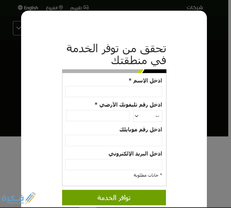 - سيُطلب منك إدخال بياناتك الاسم ورقم الموبايل وعنوان البريد الالكتروني، ورقم الهاتف الارضي للتحقق من توافر الخدمة في منطقتك.