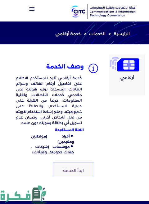 1. ادخل على الموقع الرسمي الذي يخص هيئة الاتصالات من هنـــــــــــــــا.