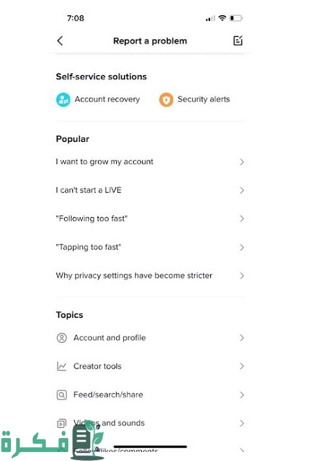 - الدخول إلى صفحة الدعم الفني لتيك توك من هنــا.