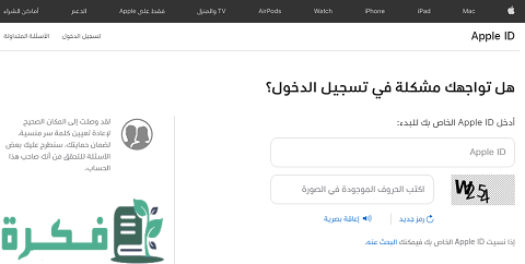 - قم بالانتقال إلى الصفحة الرسمية الخاصة باستعادة كلمة المرور لحساب آبل في حال نسيانها من هُنـــــا.